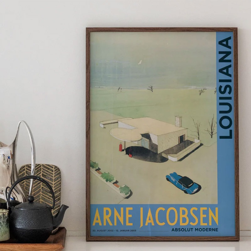 こちらは言わずと知れた世界的な建築家、アルネ・ヤコブセンによる "スコウスホーズのガソリンスタンド" のドローイングのポスターです。