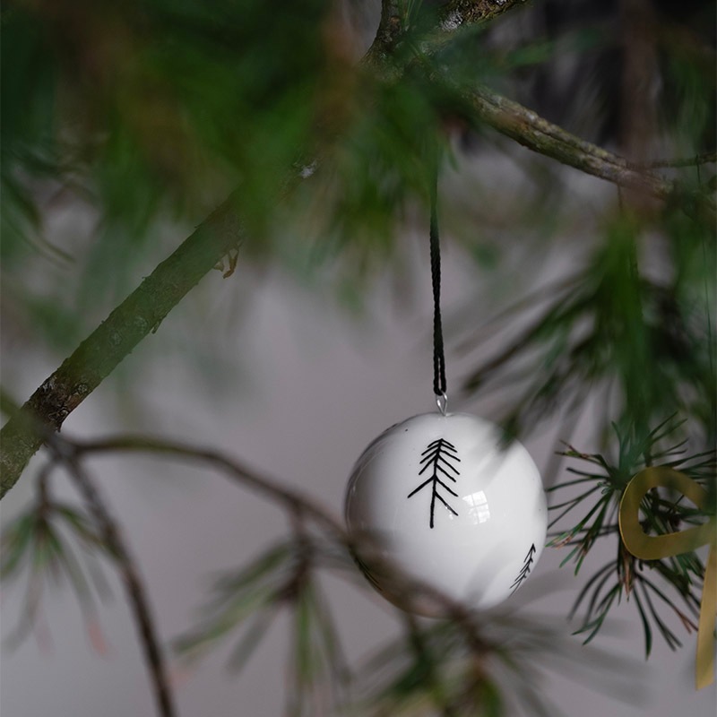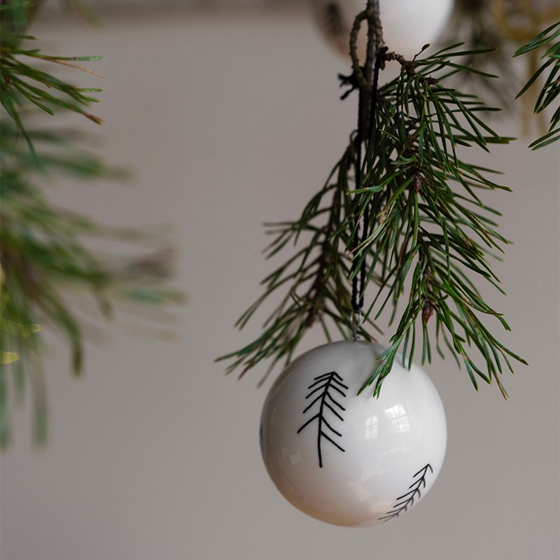 こちらは、Fine Little Day ファウンダーの Elisabeth が描いた、針葉樹モチーフの陶器のオーナメントです。