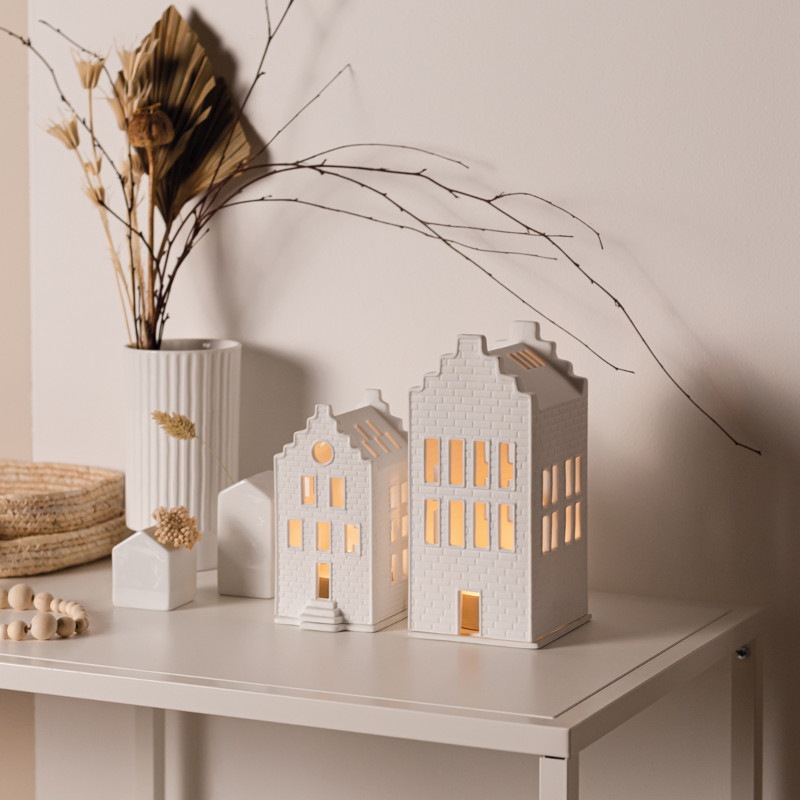 こちらは、磁器製の建物から漏れる光が美しい、レンガの家のオブジェです。