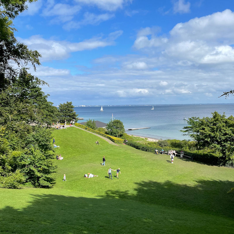海を望む小高い丘に位置していて、丘の斜面では子供たちが転がっていて、緑豊かな庭には彫刻が点在していて、その庭に向かってデンマークらしいインテリアのカフェ&レストランがあって…(画像の後半をご参照ください)。