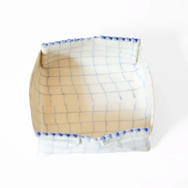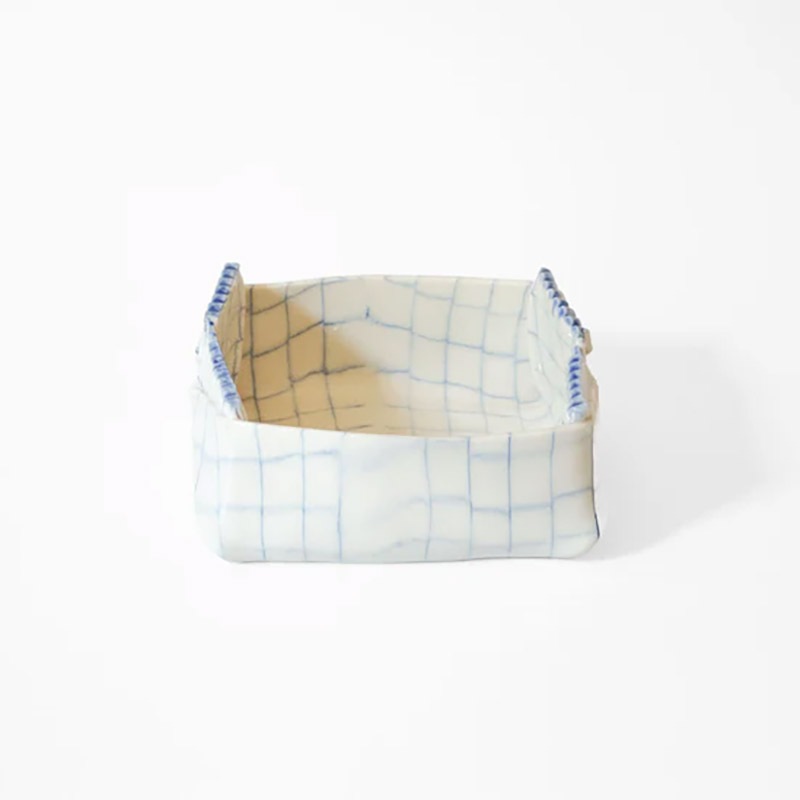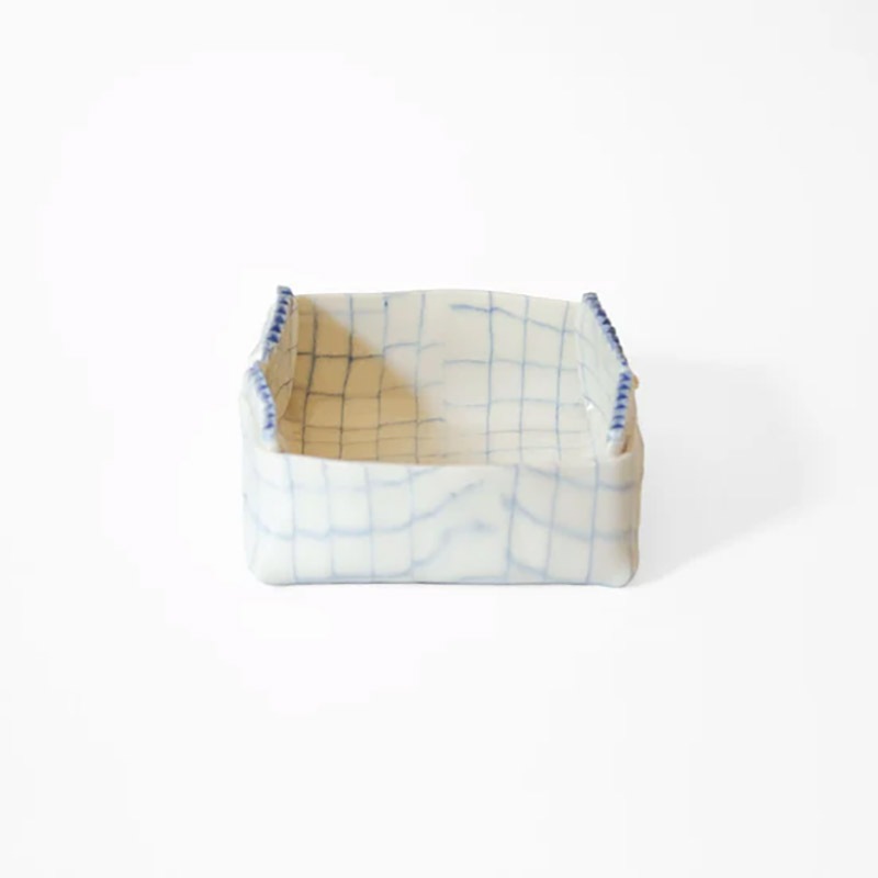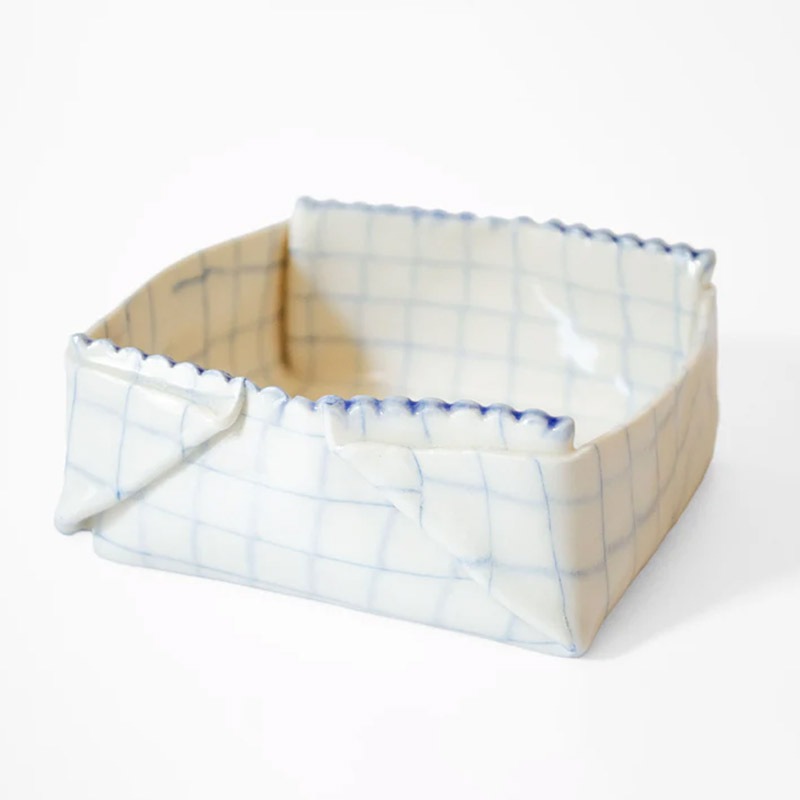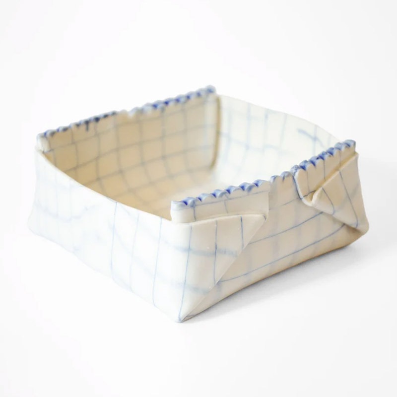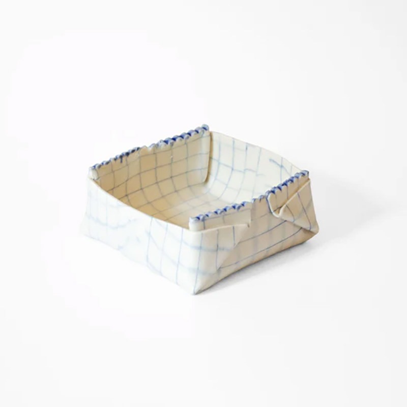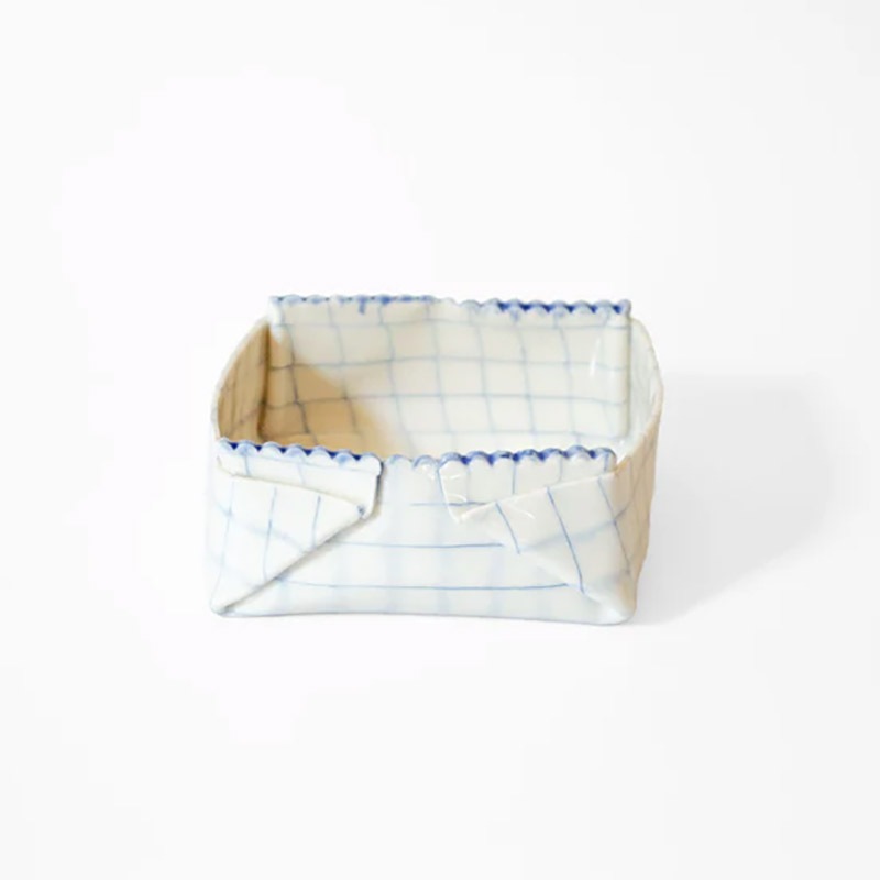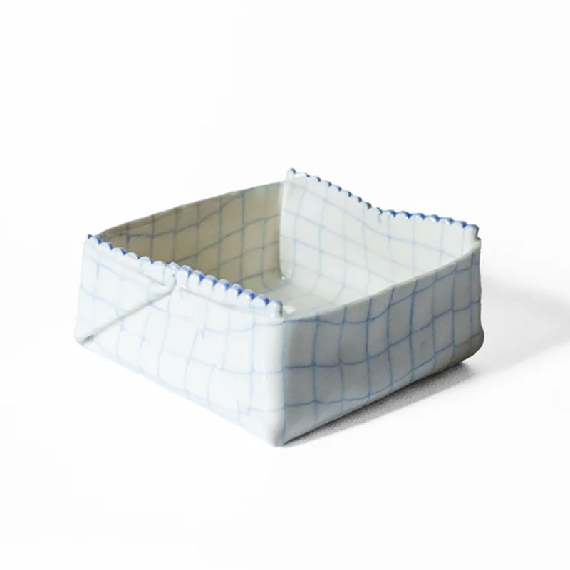 Saori M Stoneware 練込 チェック柄 折り紙ボックス ボウル 11.5cm 磁器 日本/アメリカ