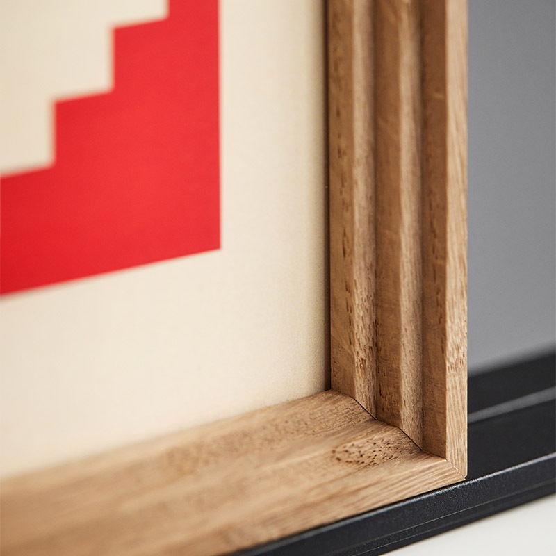 アクリルガラスにアートを挟み、木枠でその四方を囲んで、ゴムで1つにまとめます。
