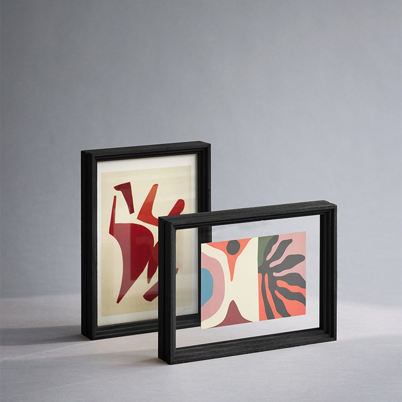 背板がクリアなのを生かして、フレームより小さいアートを入れて、透明な余白を楽しんだり、押し花や植物を挟んだり。