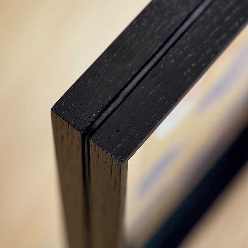 - オーク無垢材(ブラック着色)、アクリルガラス、ゴムバンド