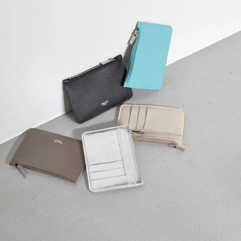 blancle 日本製 本革 フラグメントケース 薄型コンパクト財布 ライトベージュ / トープ / ロビンエッグ ブルー / ブラック / シルバー イタリア製シュリンクレザー / メタリックレザー