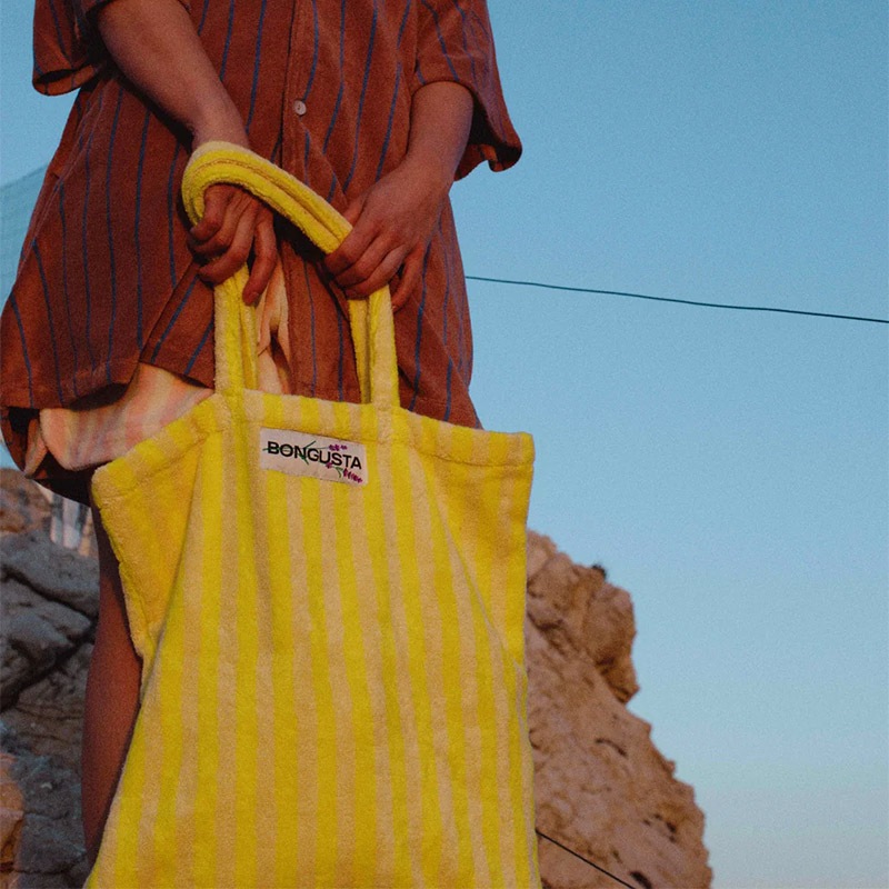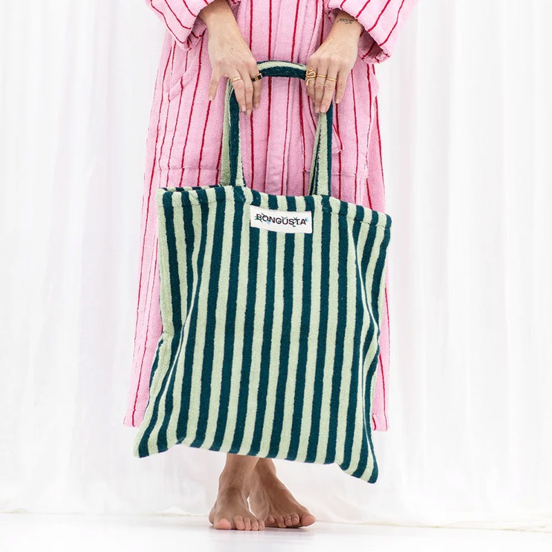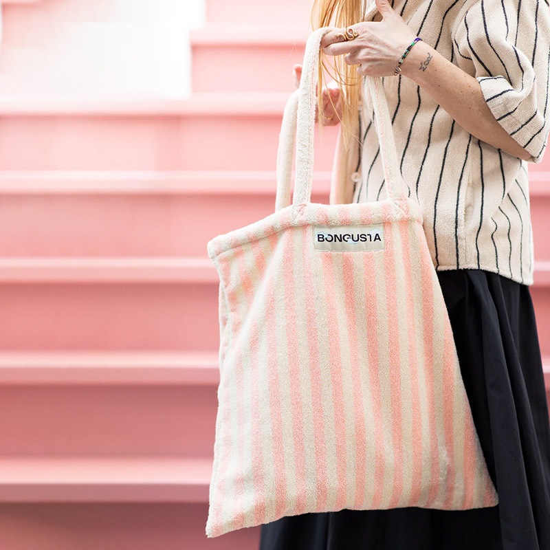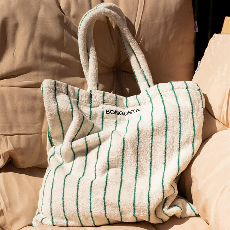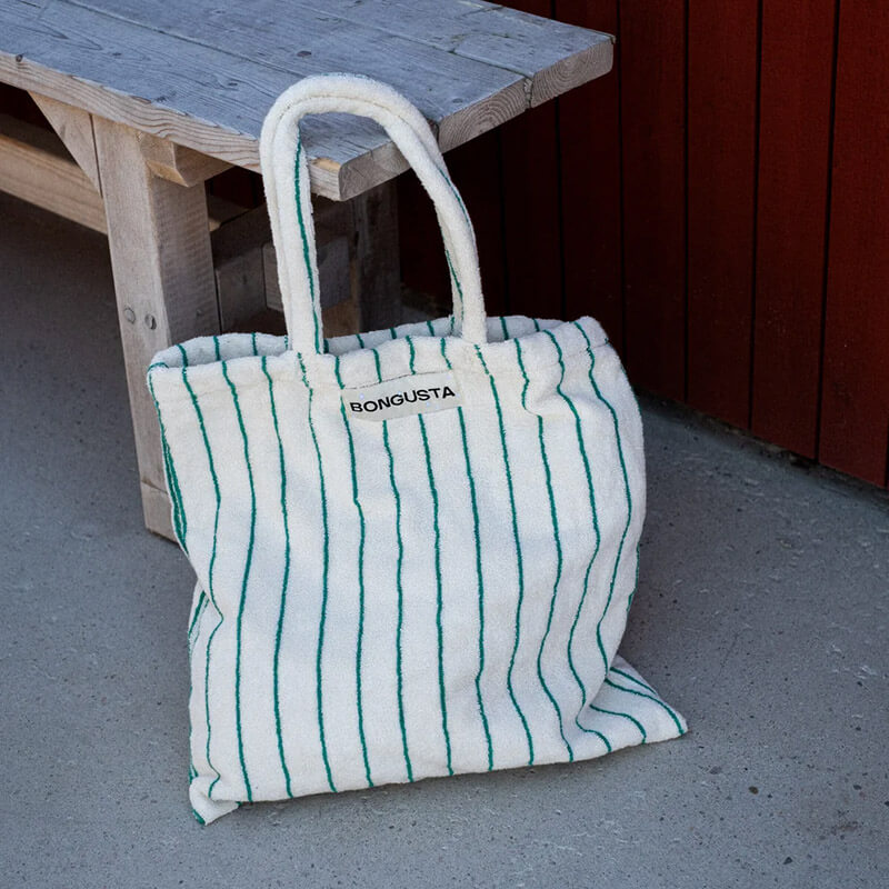 BONGUSTA タオル生地 トートバッグ 44x47cm 全9色 オーガニックコットン ストライプ 北欧 デンマーク