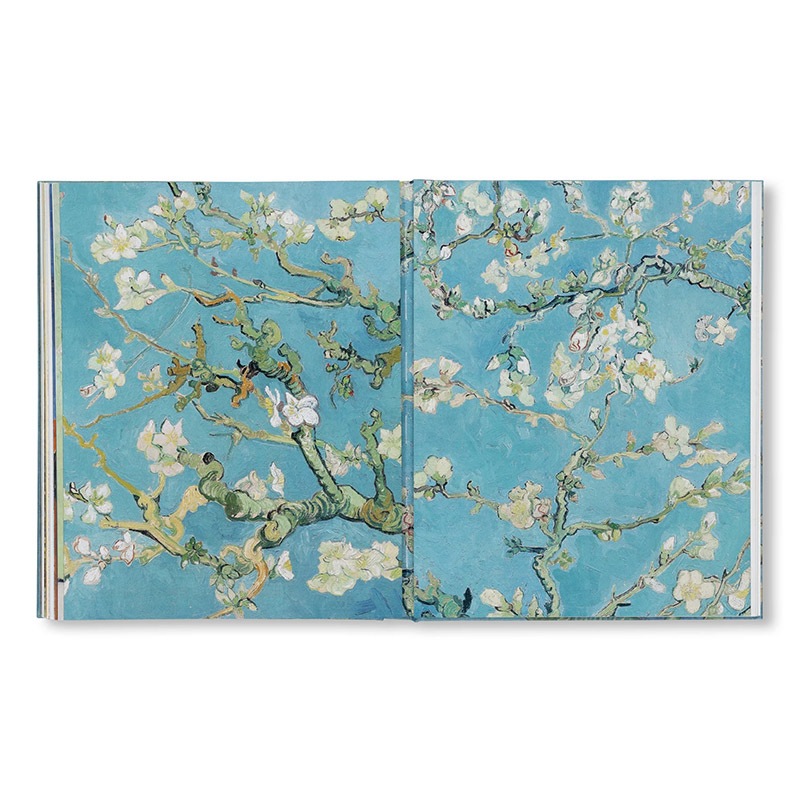 『花咲くアーモンドの木の枝』の美しい表紙は贅沢なキャンバス地張りで、本の小口にまでその絵が施されています。