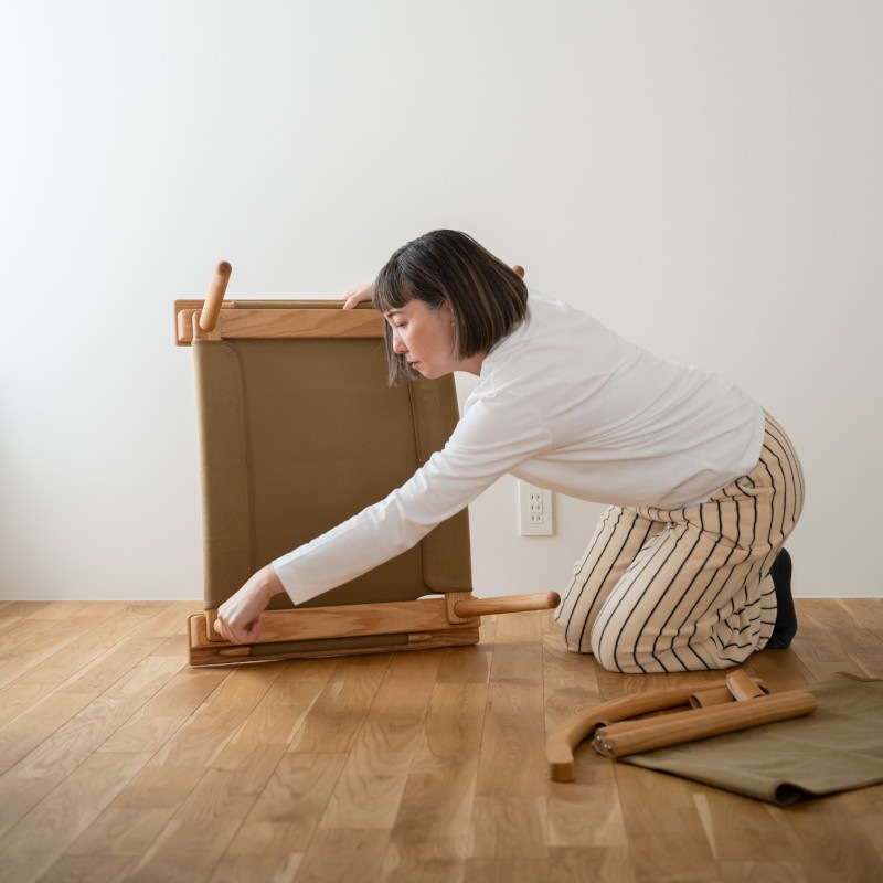 木取りから縫製、仕上げまで、国内で手仕事で作られる、The Canvas Chair。