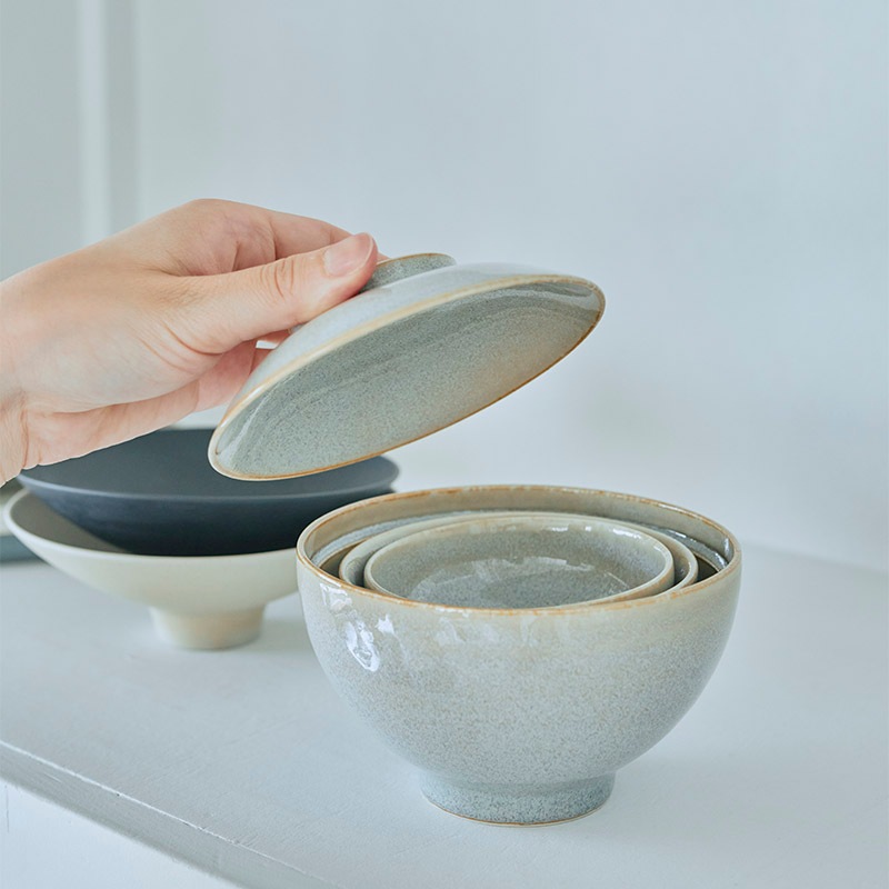 \長谷川あかりさんコラボ/ よりそう入れ子碗 4点セット(汁碗・茶碗・小鉢・取り皿)[灰]食洗機・電子レンジOK 多治見 日本製 KIHON NO UTSUWA
