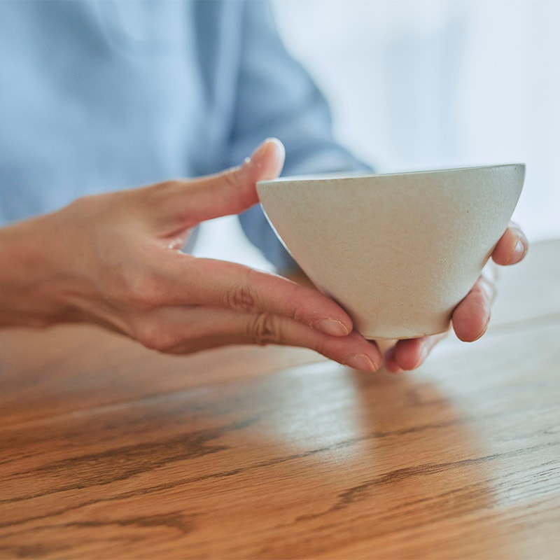 やや小ぶりのお茶碗には食べ過ぎにならない、程良い量のご飯を。