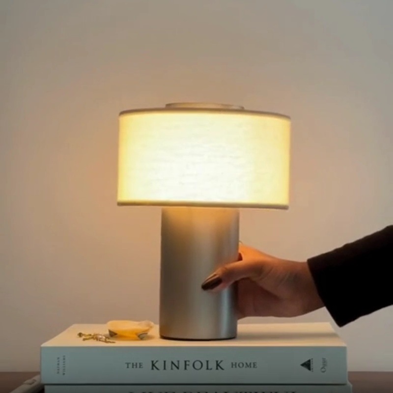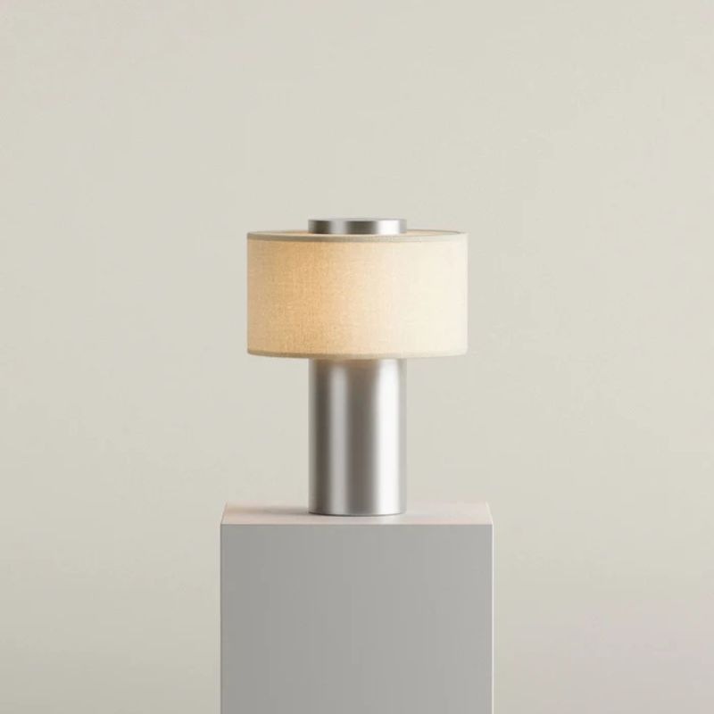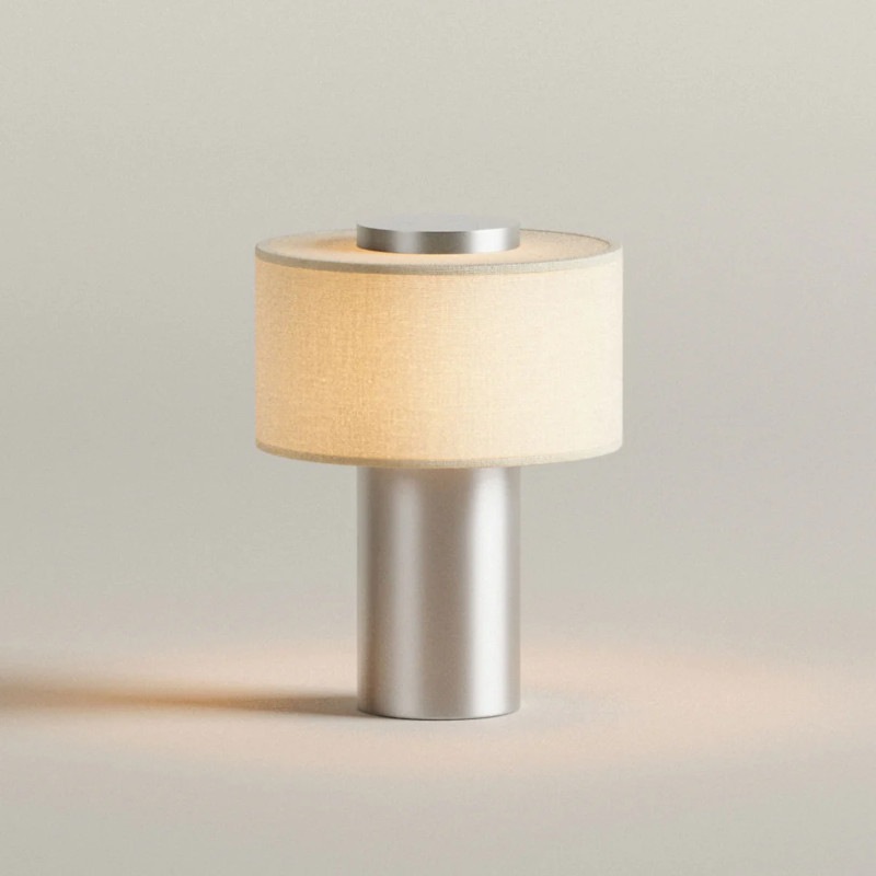Blossholm Aurie ポータブルランプ サテン アルミニウム × リネン 充電式 コードレス LED φ17.5 x H24 cm ブロスホルム 北欧 デンマーク