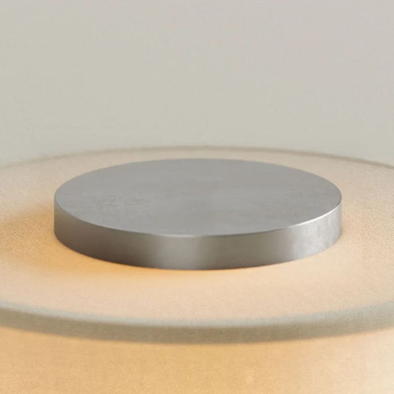 メタル仕上げのベースに、柔らかな弧を描くリネンシェード。
